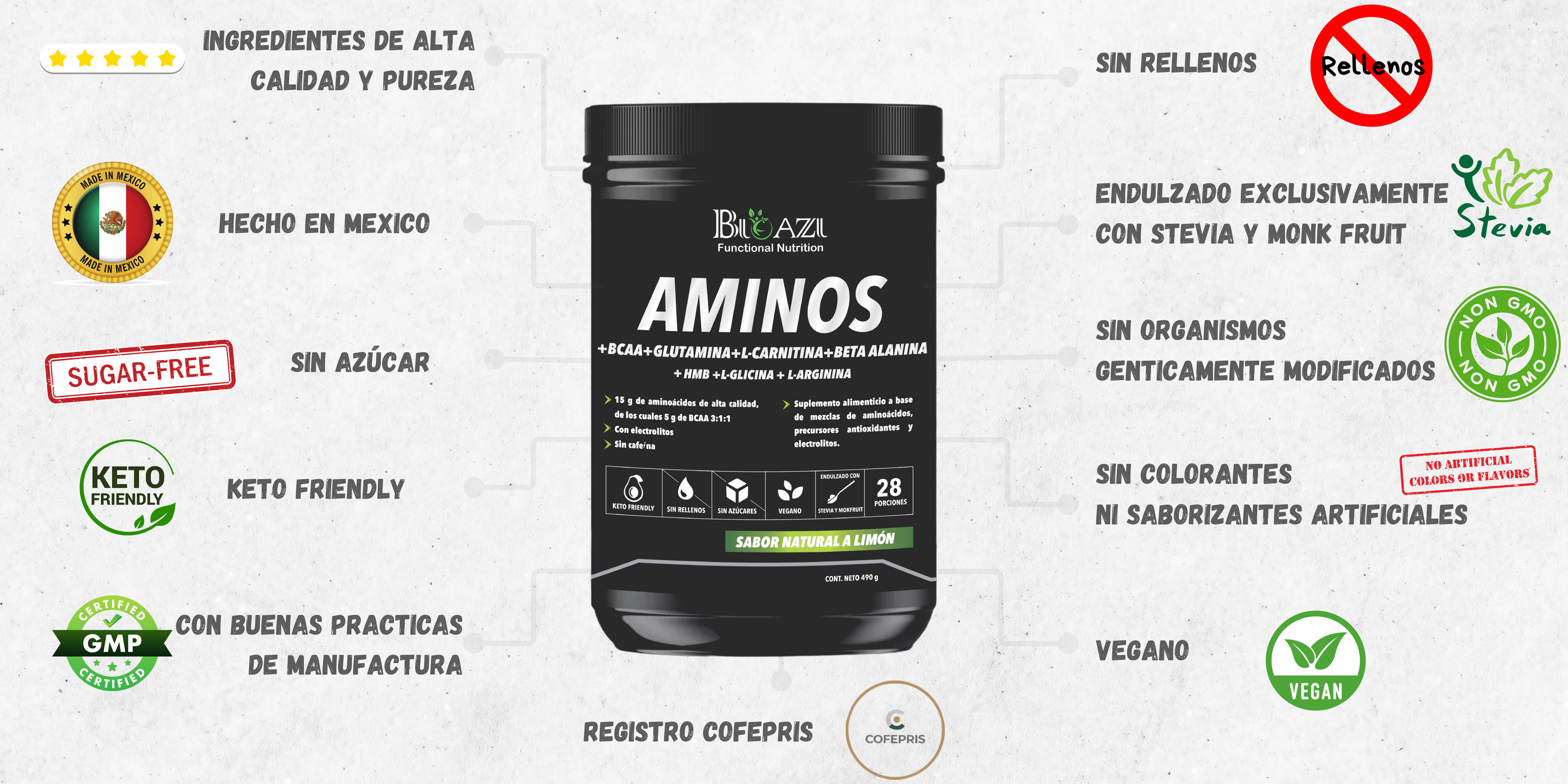 Aminoacidos esenciales + BCAA + Glutamina + Carnitina + Beta Alanina + HBM + Glicina + Arginina